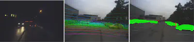 Annotation-rgb and Annotation-grey images were all saved as PNG files. For nighttime data, we provided lidar-camera projection images for better visualisation. The LiDAR points were upsampled and projected into the camera images, shown as following.