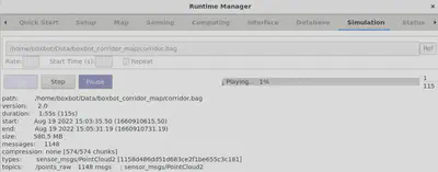 To make use of the NDT mapping module in Autoware to make point cloud map. First need to initiate the runtime manager, which is a graphic interface in Autoware to load the parameters and initiate the modules. Then in the [Simulation] tag, playing the recored bag.